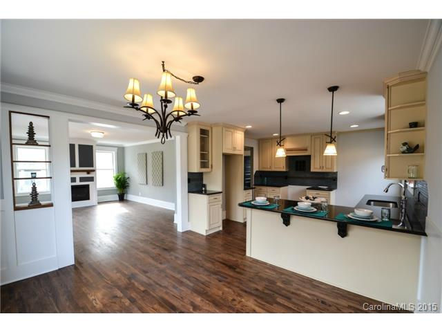 The kitchen in this home is one that will last forever. The beautiful cabinets really made a difference in the kitchen. The color was a little different but it really worked well with the contracting colors of the home. The dark countertops worked really well also as they helped tie in the floor color as well as the dark color light fixtures.
